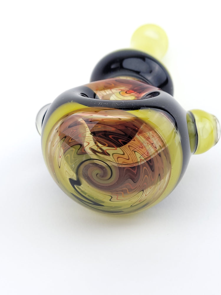 Cowboy hand pipe in yellow with black incalmo and red and black reversals
