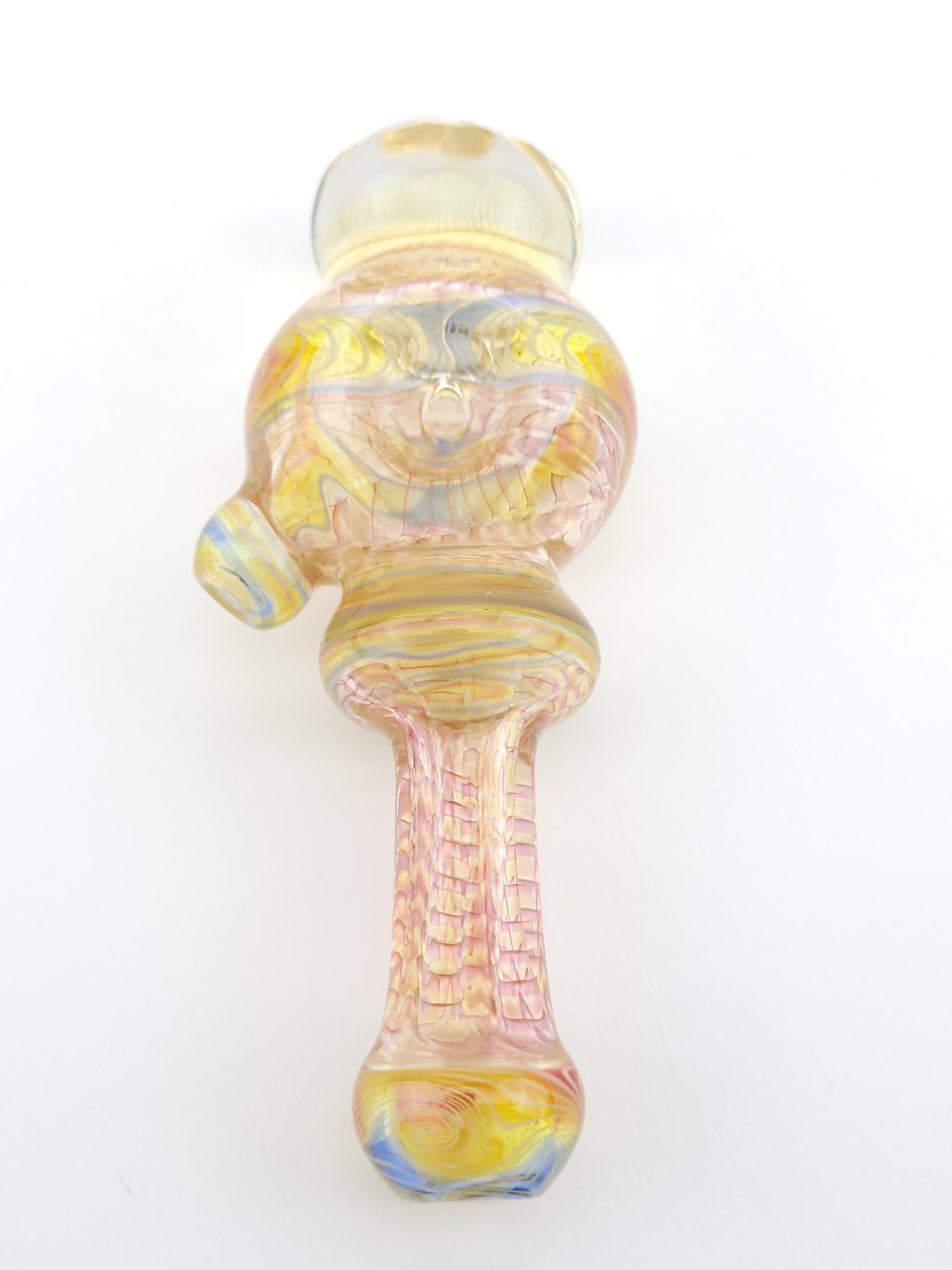 Cowboy Hand pipe in yellow red and blue with a faceted fume attachment