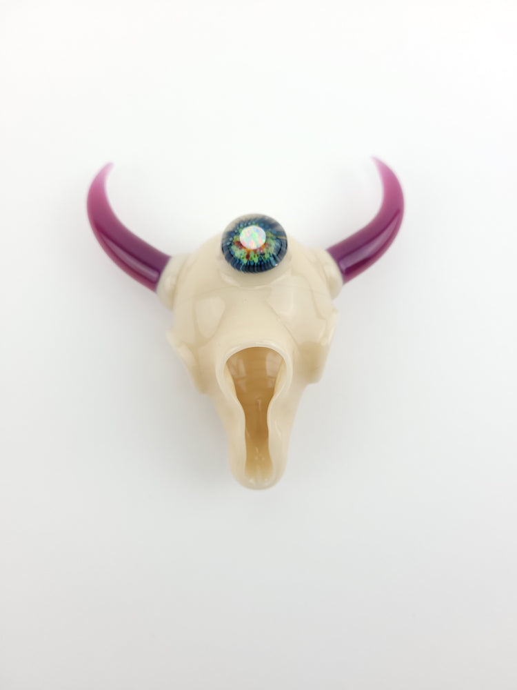 Cowboy Skull pendant with amber purple horns, millie and opal third eye.