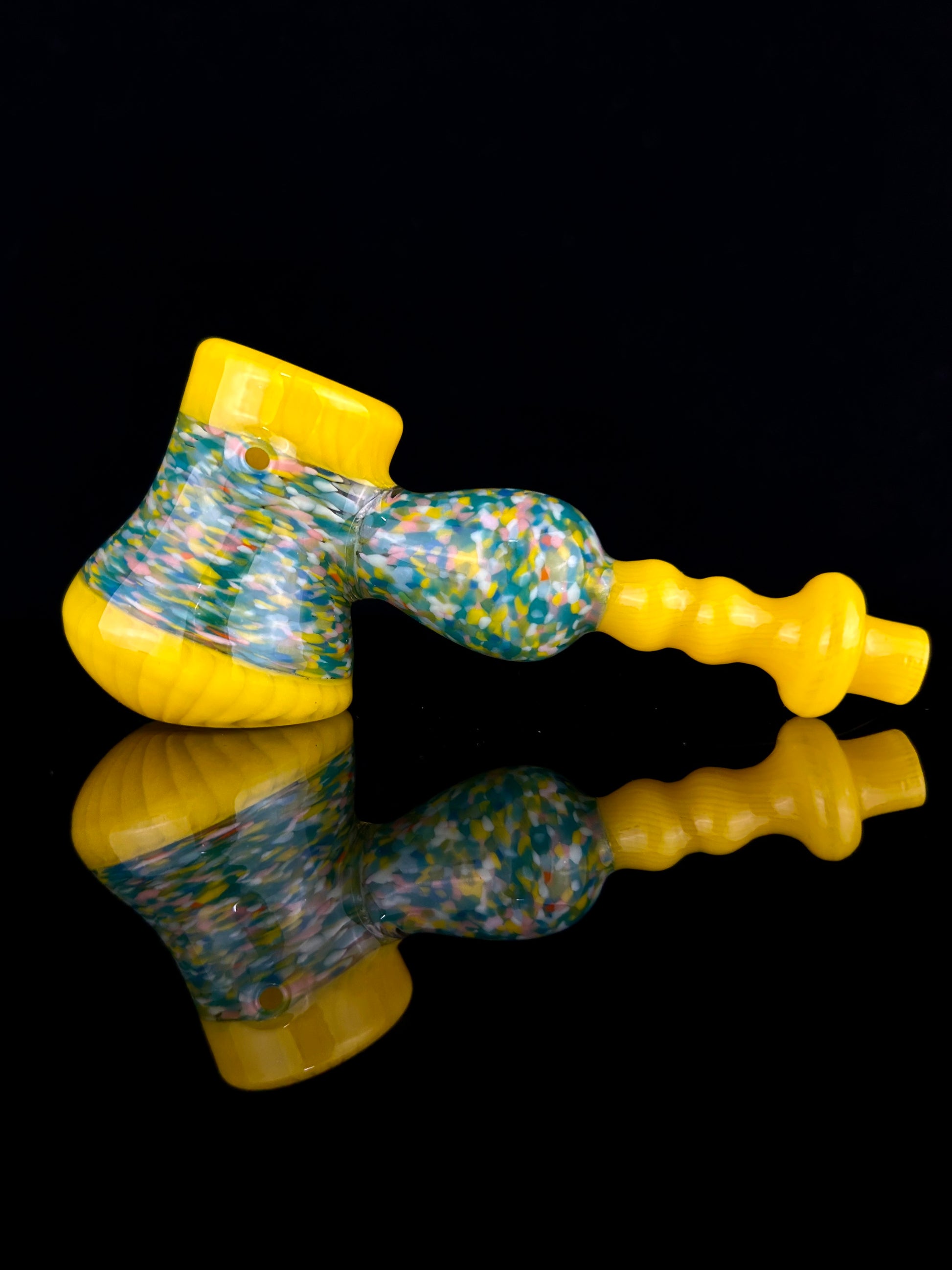 Nice little dry, multi section frit hammer. Unique shaping and decent weight! Measures approx 5" long