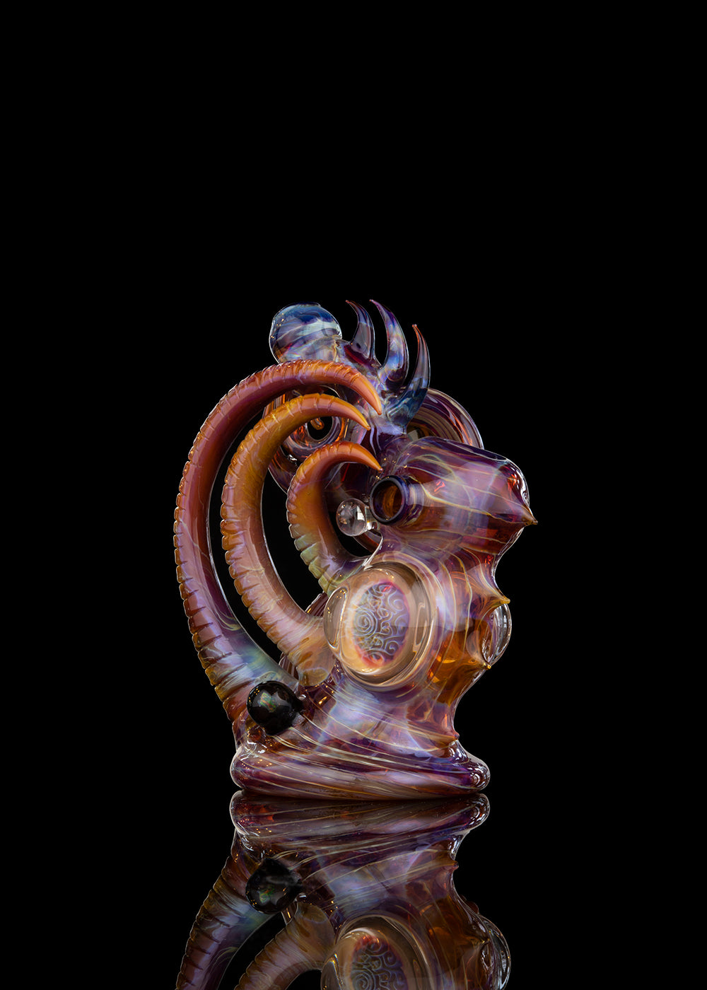 FREEEK! Horned Amber Purple Bubbler with Brain Marbles and Filla by Freeek!