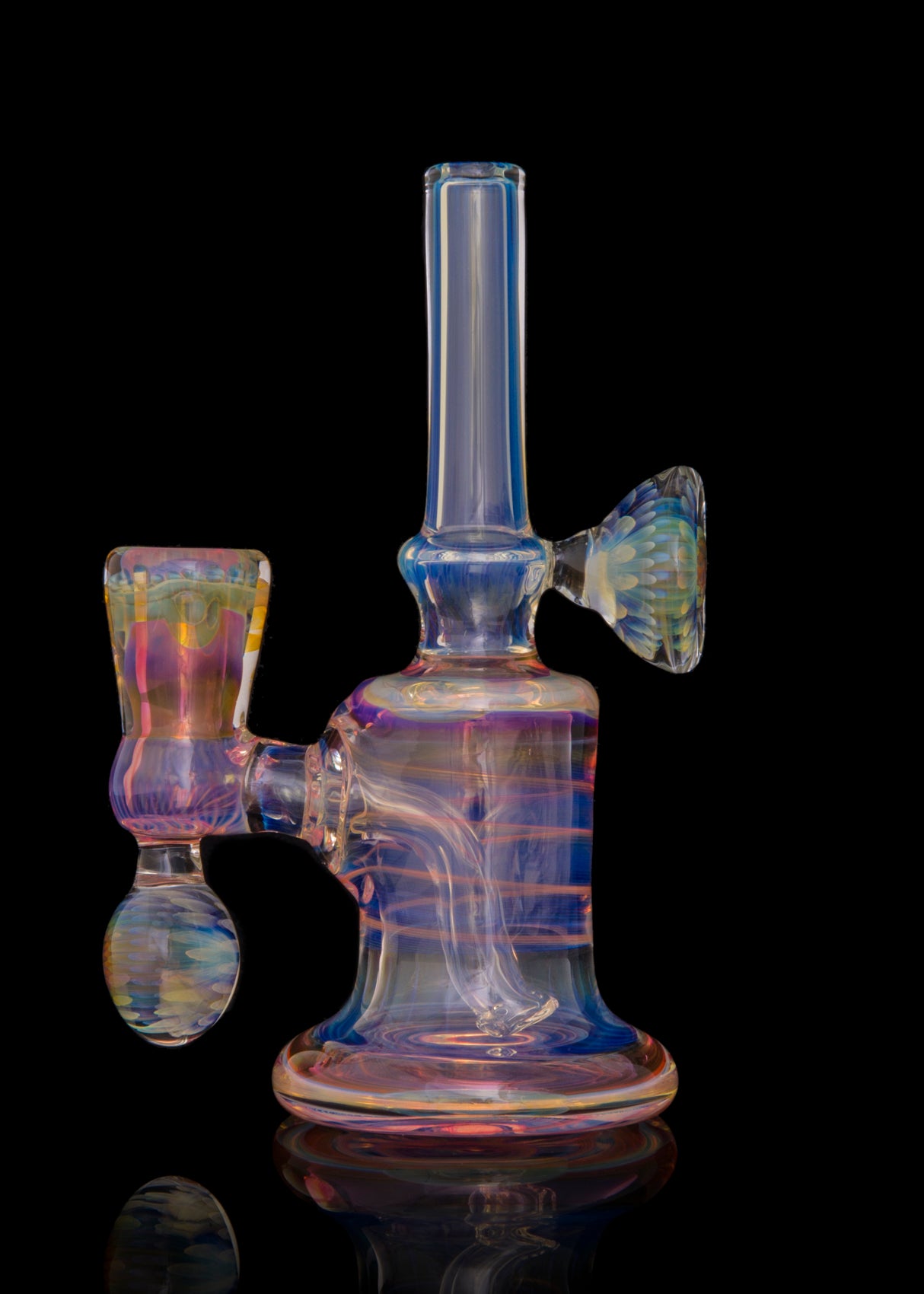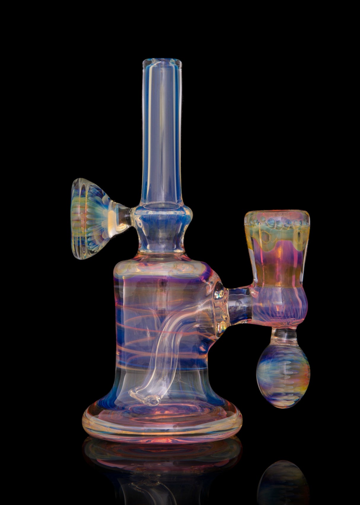 This beautifully fumed mini vapor tube was manifested in 2016 by the "fume master himself," Maka B. The tube features 2 implosion marbles and several fumed linework sections. This little baby also comes with a signed black Pelican 1150 for protection.