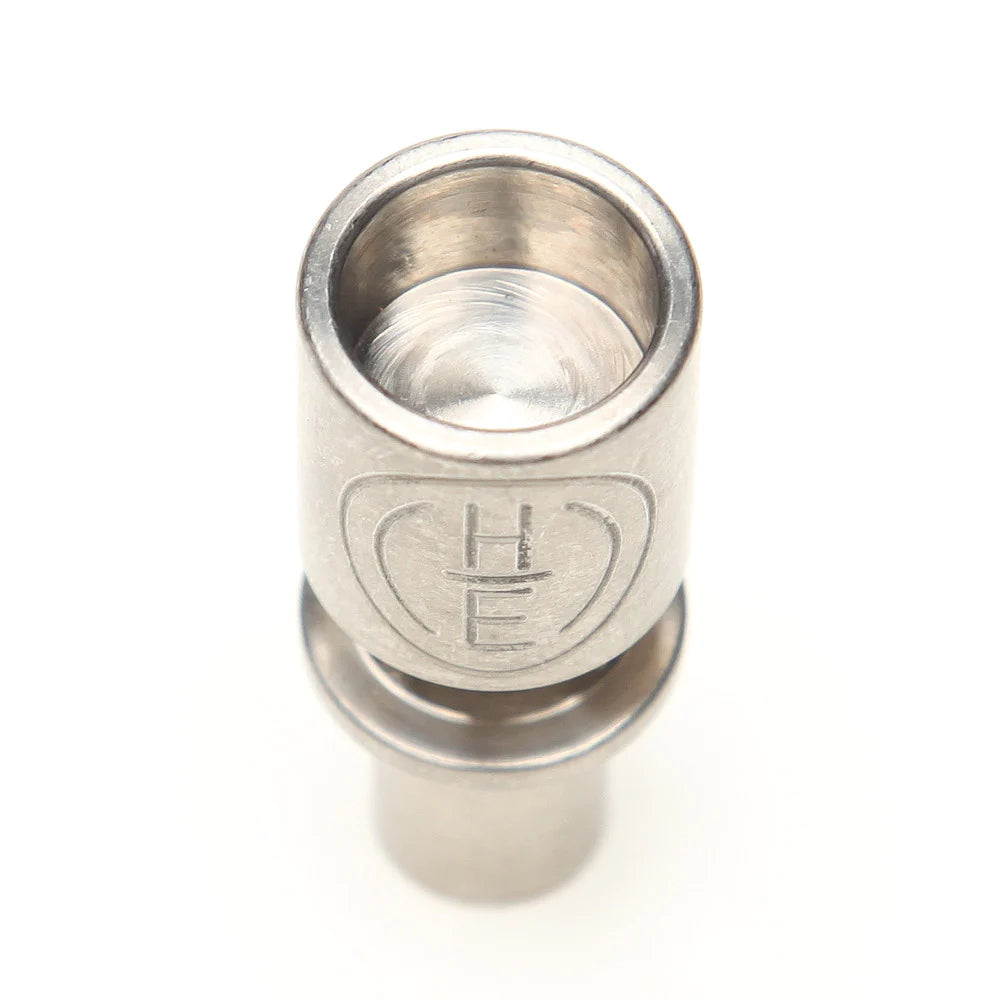 The Flux Nail is the most affordable and one of the most functional nail series from Highly Educated. Designed to work with 10mm, 14mm, and 18mm vapor dome set ups, the Flux Nail was made to have the largest allowable diameter head for the respective working joint sizes. A lip halfway down the Flux Nail body holds the Flux Nail in place as it rests on the male glass ground joint. This lip, in conjunction with a vapor dome, forces the vapor stream down the hollowed center shaft of the Flux Nail injecting it directly into the piece greatly reducing the amount of reclaim which would previously collect on the outside of the glass ground joint. Keeping the joint clean prevents the vapor dome from sticking and keeps your hands clean while operating. The Flux Nails come in 3 different diameter sizes, with 3 different options for nail heads. The nail head options consist of the Standard dish (flat), The C-Cup (concave cup), and the Turbine Top (center point rise in dish resembling a turbine). The 10mm Flux Nail is only available in the Standard dish (flat) option.