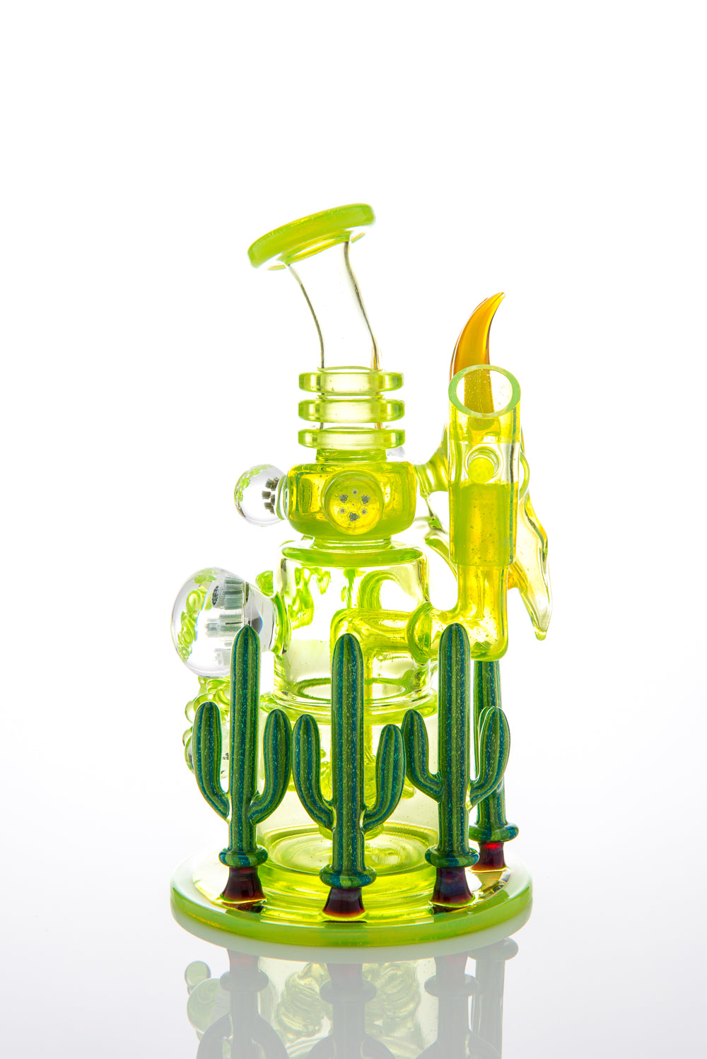 - Colors and features: Slyme, Sublime, Honey Money, and Darby's Cactus Dichroic tubing; 4 cacti, 5 attached marbles, 37 millefiori.