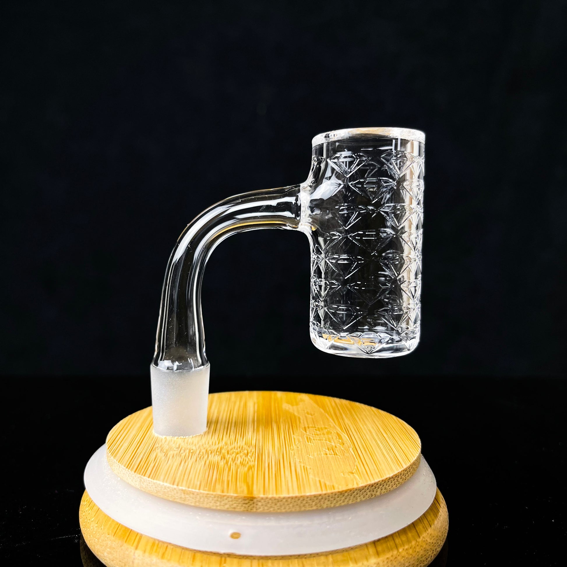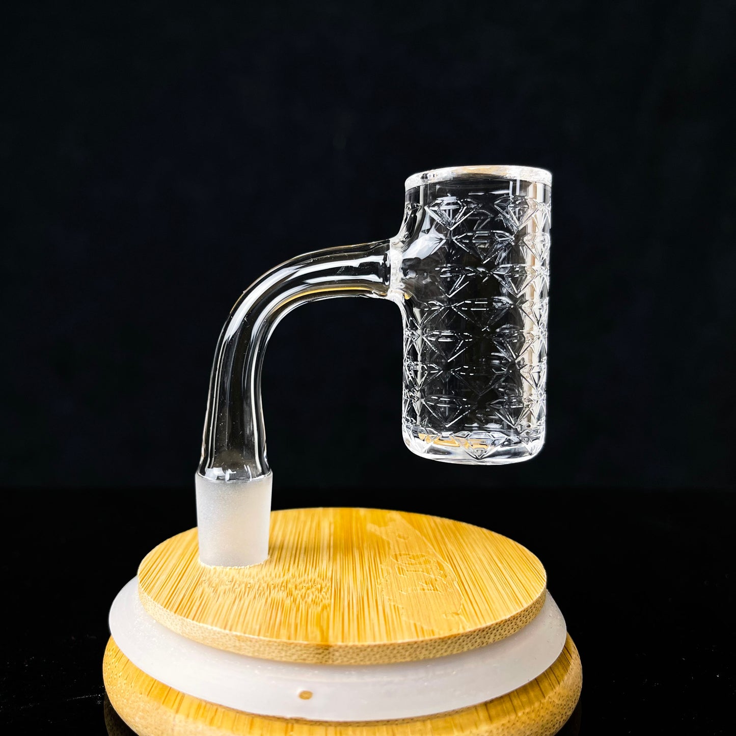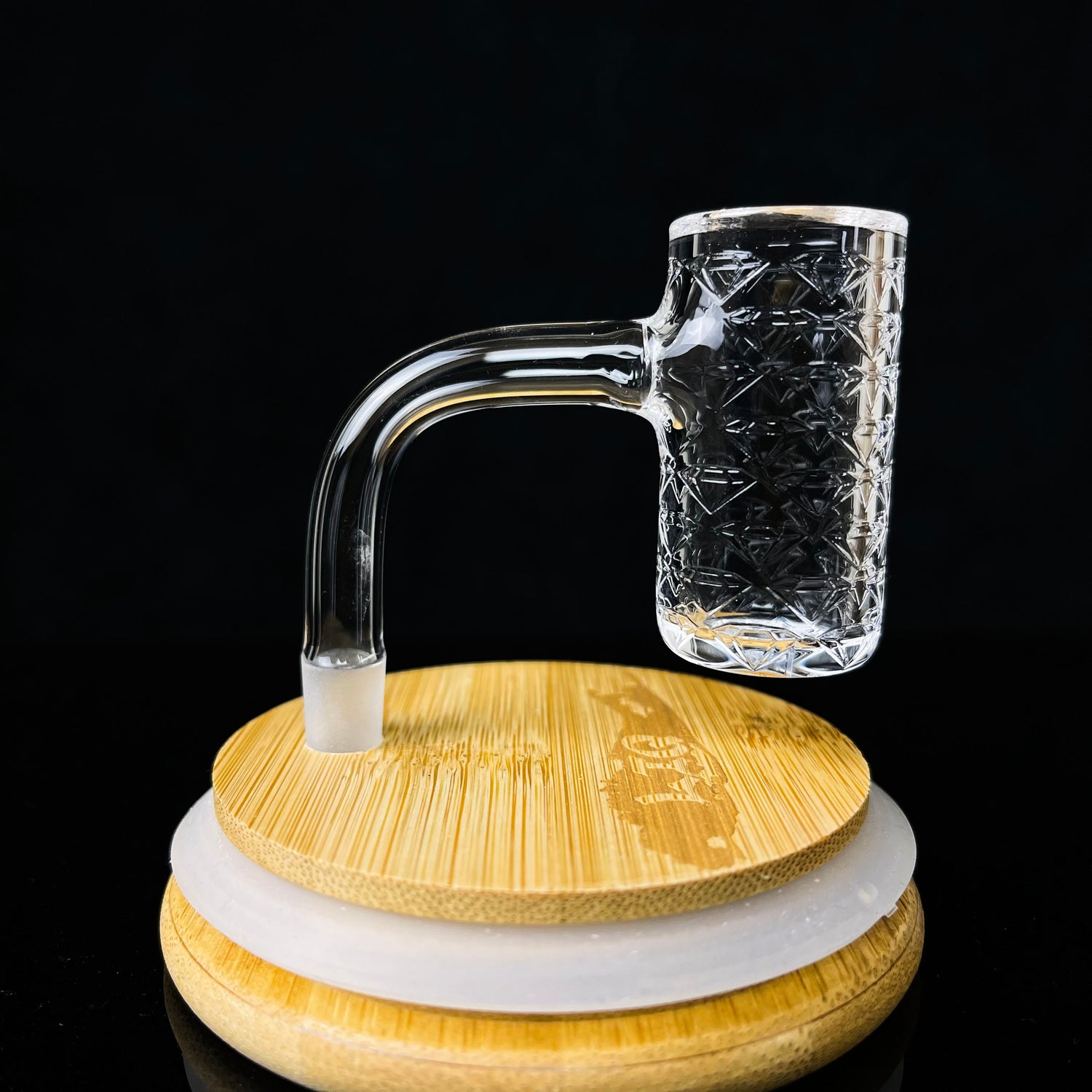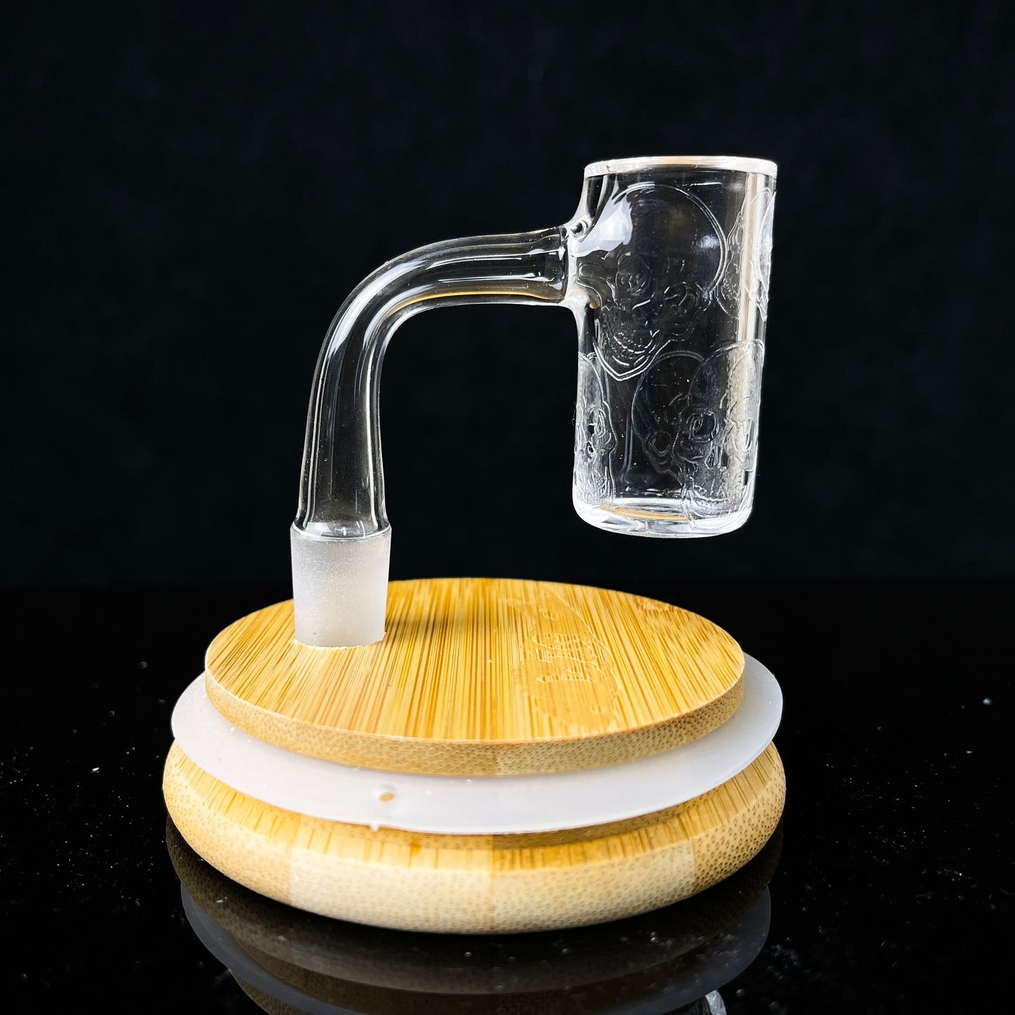 Comes with a glass cover on standing as well as the design on the banger is also layered on the bottom. The Included container / Packaging also makes a great jar!