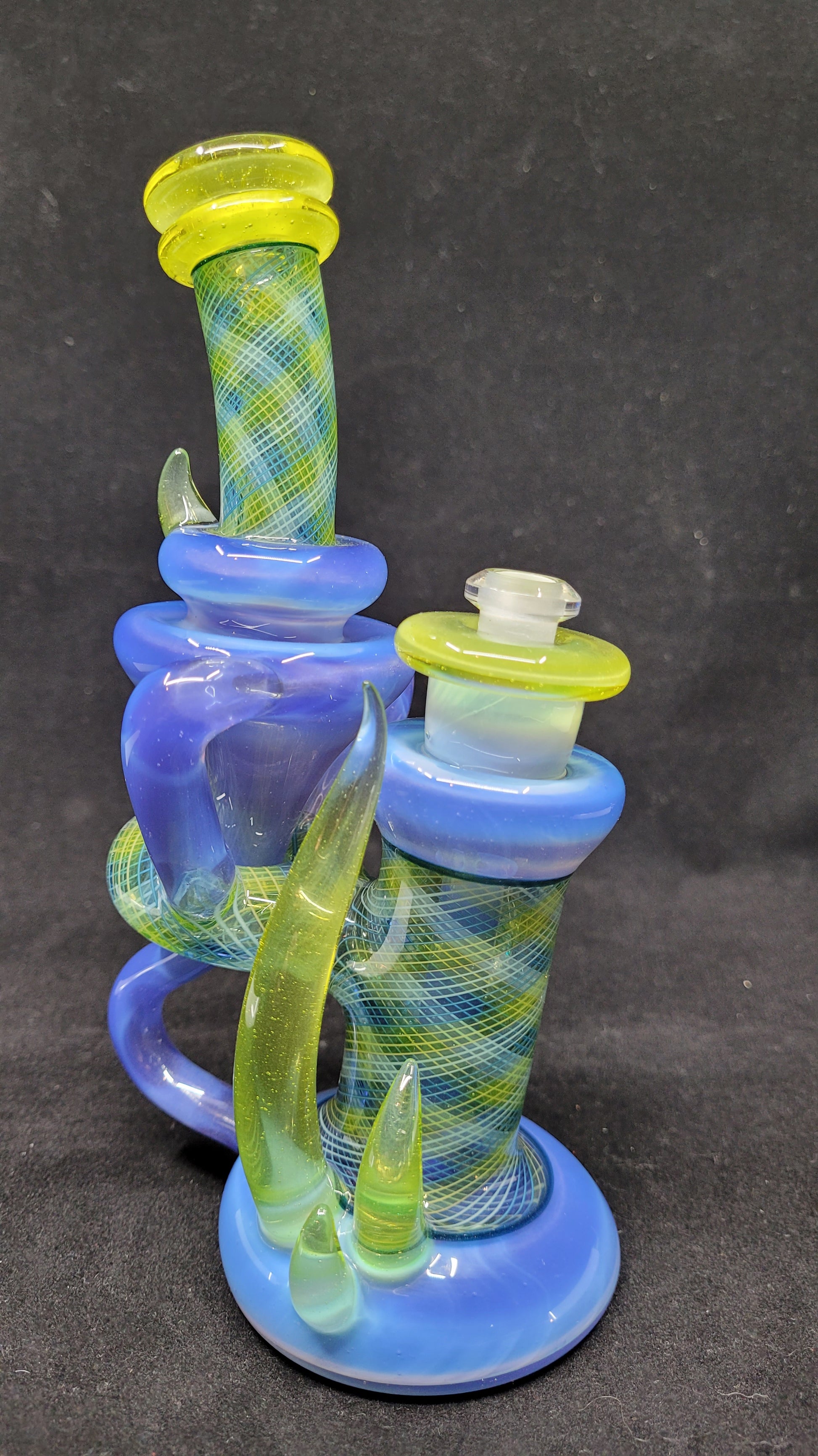 Each of these feature incredible recycling action, retti linework, horns, a marble, and a 10mm removable matching downstem!